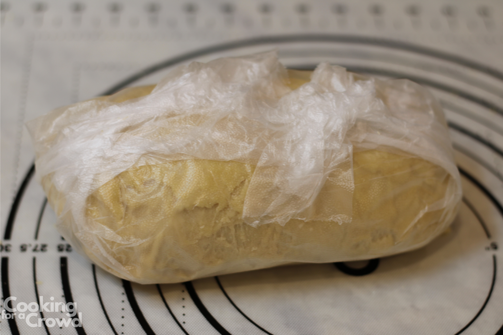Cut off a piece of dough about two inches thick. Form it into a rectangle.