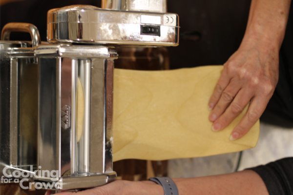 Continue running the pasta dough through the machine, changing the setting to a narrower width each time until you are happy with the thickness. I usually go from zero to six on my Marcato.