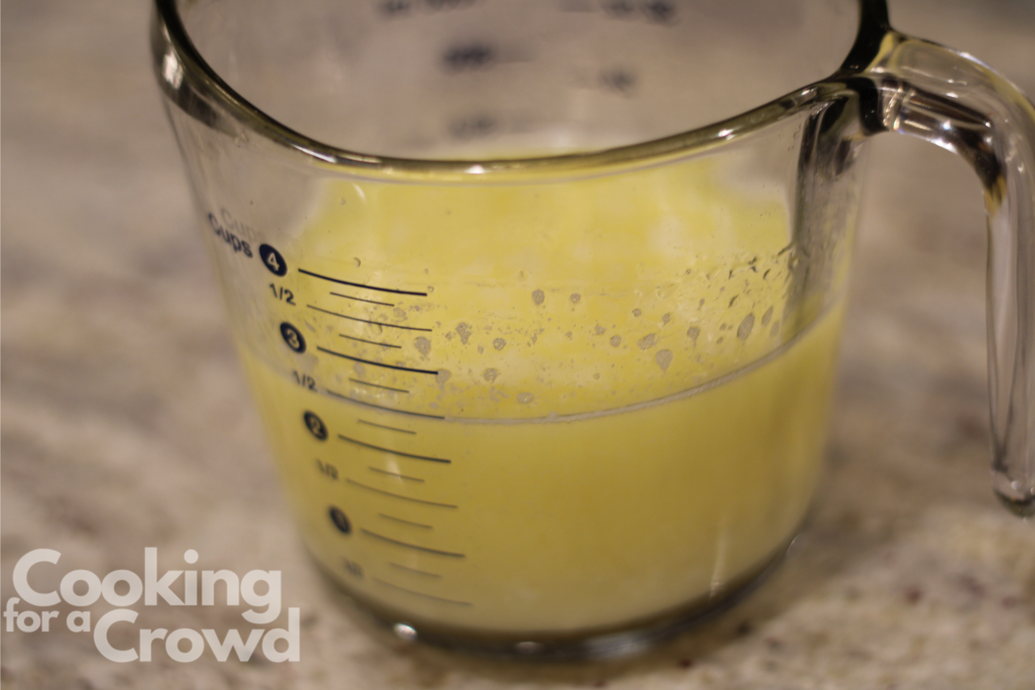 Put the rest of the butter into a microwave safe bowl and melt it in the microwave. You can also dirty another saucepan and melt it on the stove. I use one cube of butter for every two people. Yes, lots of butter!