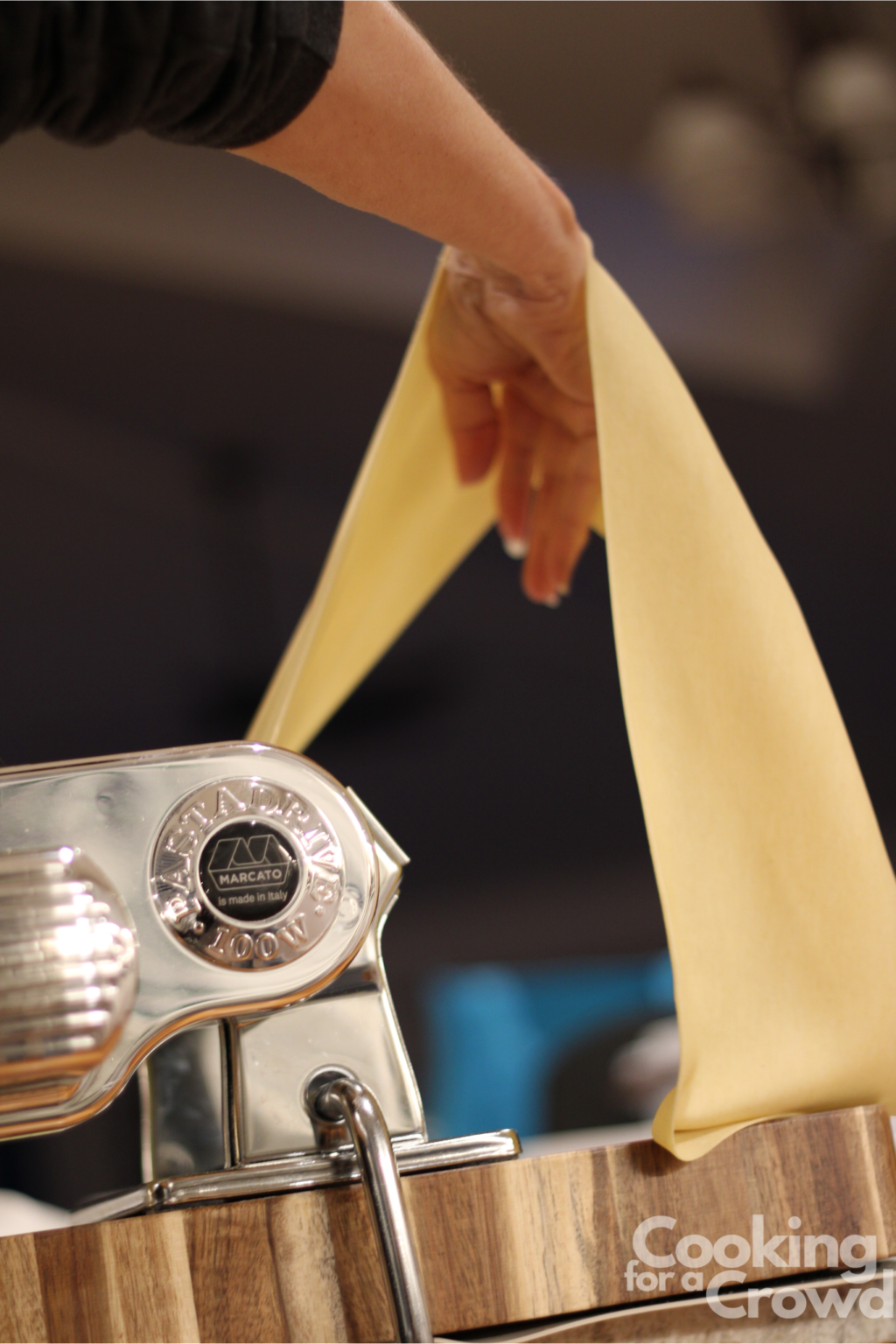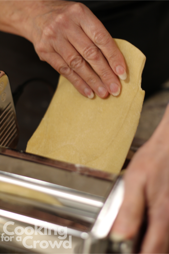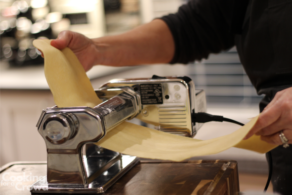 Keep feeding the pasta through the machine, changing the thickness setting in between each roll. My favorite thickness is at 6 on my Marcato machine.