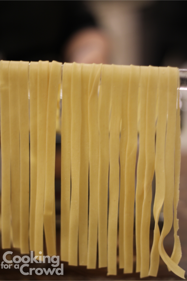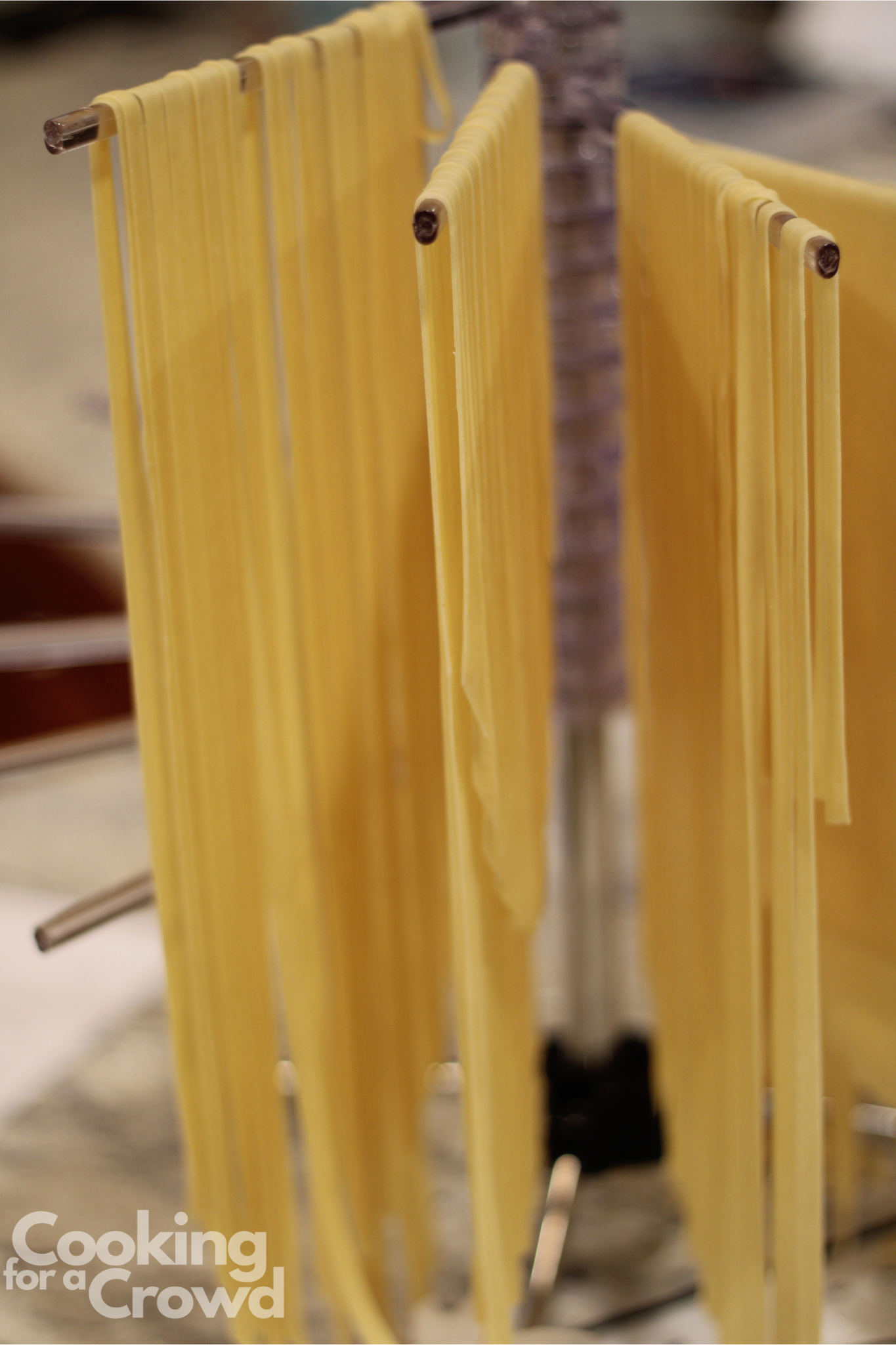 Let the pasta hang on the drying rack until you are ready to cook it. If you wish to store the pasta for later, make sure you coat it well with flour, so it doesn’t stick together. You can store it up to two days in the refrigerator, or freeze it in a freezer ziplock.