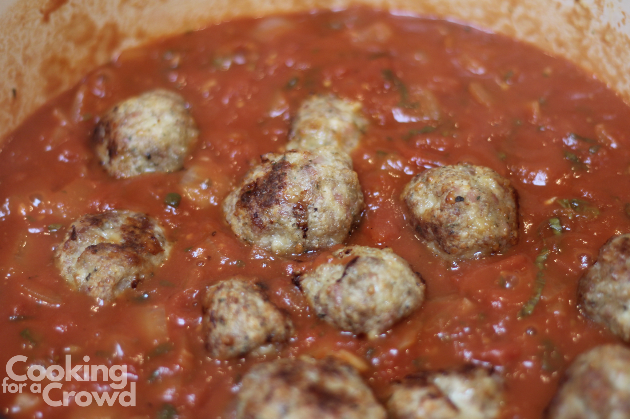 If you are adding meatballs, throw them in once they are out of the oven. See my favorite meatball recipe here!